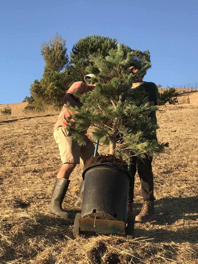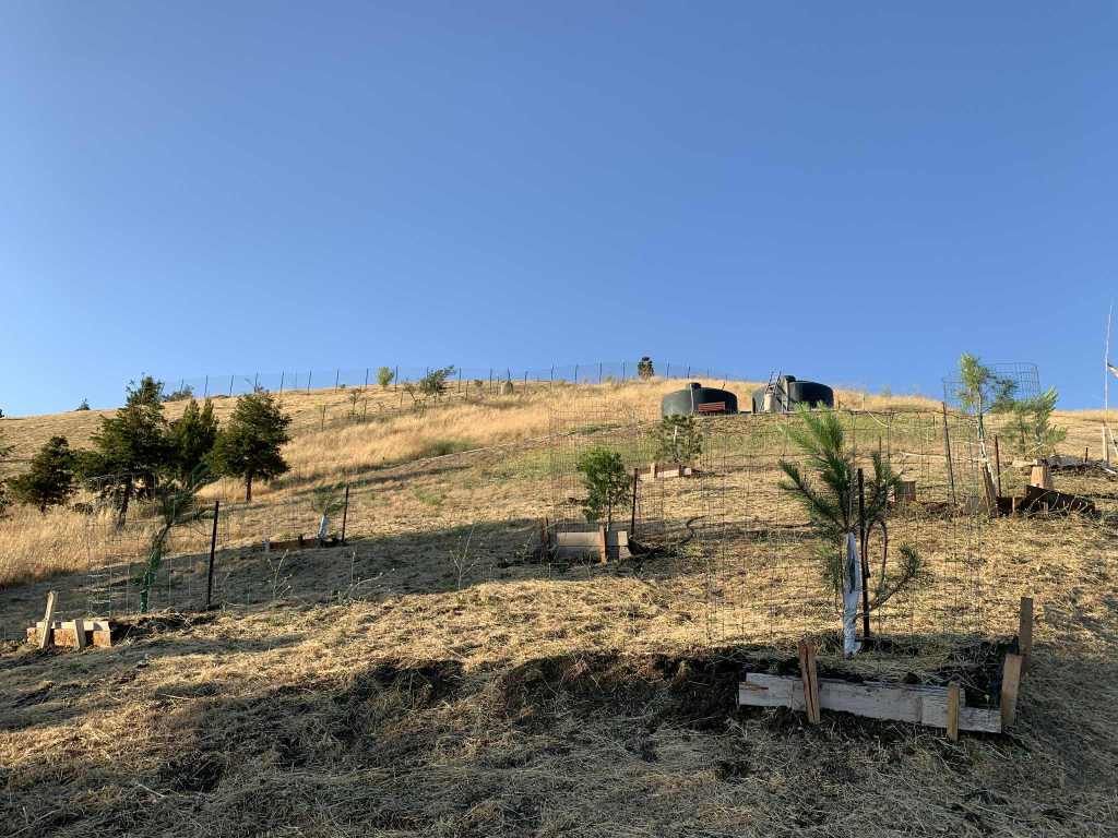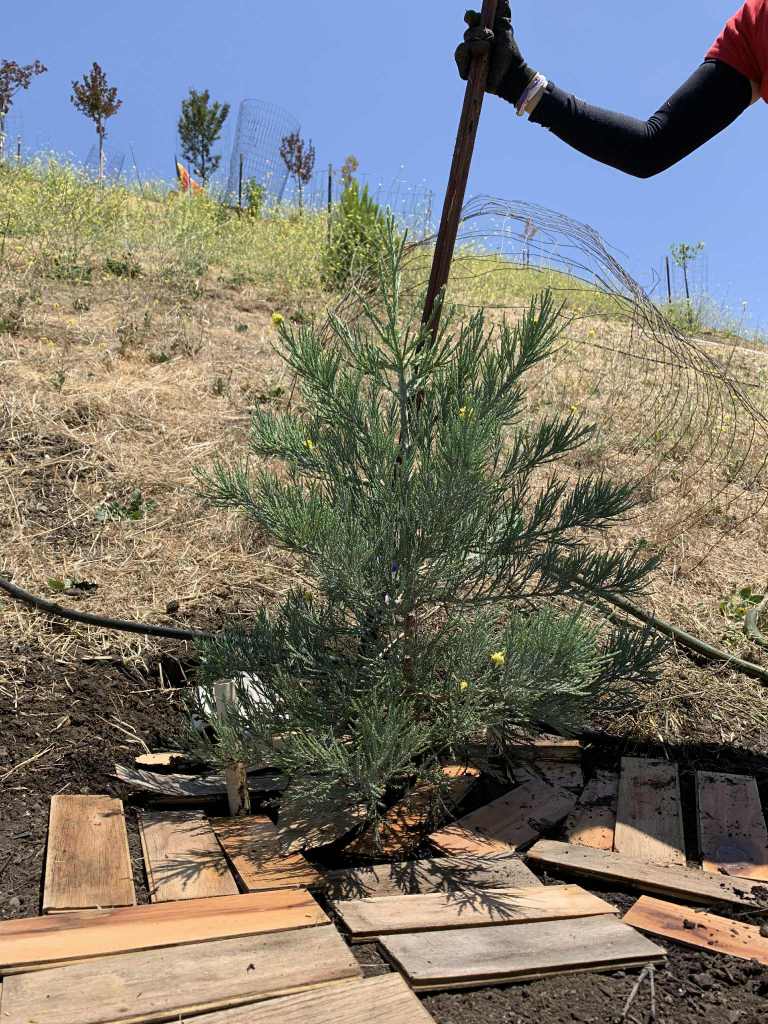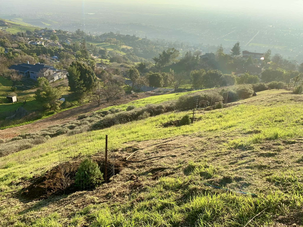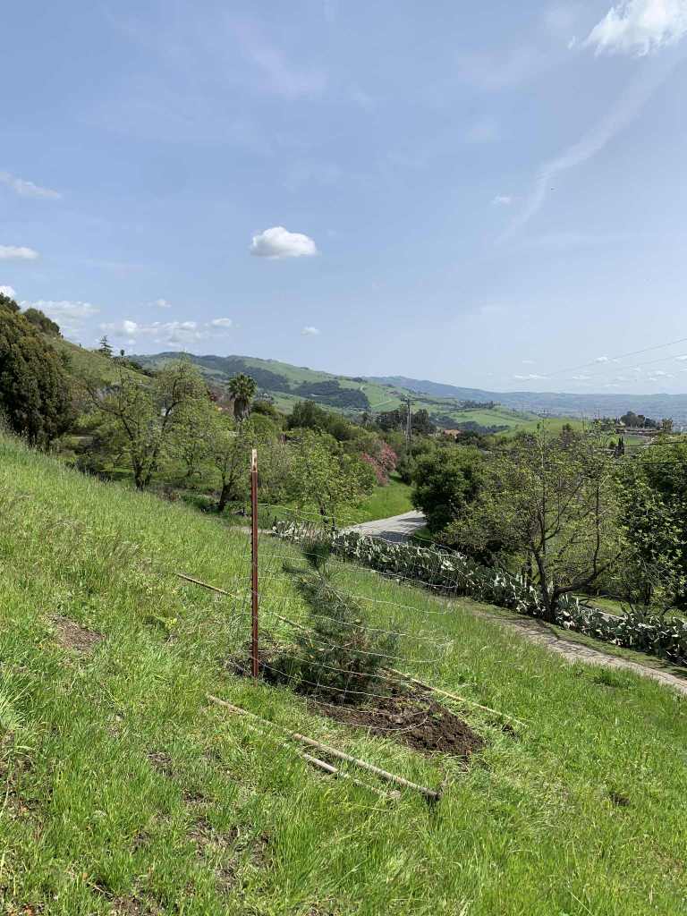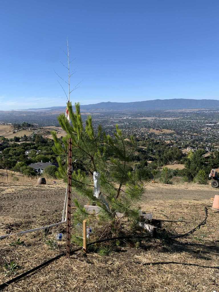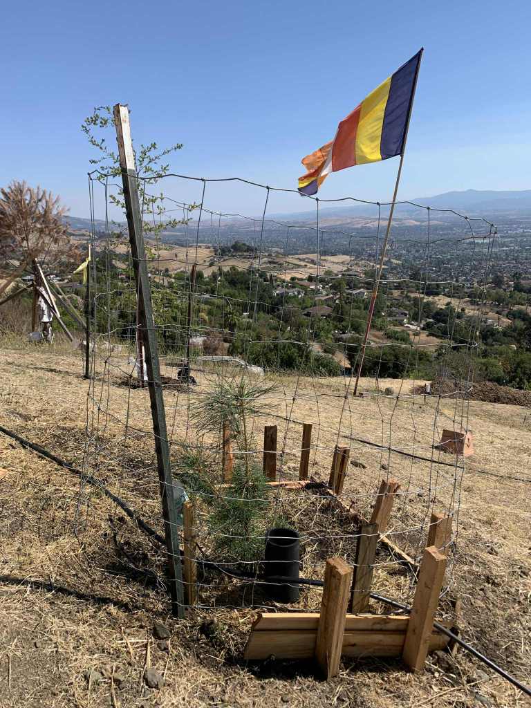 - Top hill: Still need to work on, so far only one blue oak and one bodhi tree up there, but highland pines (ponderosa, coulteri, gray and jeffrey pines) will be planted in large scale.