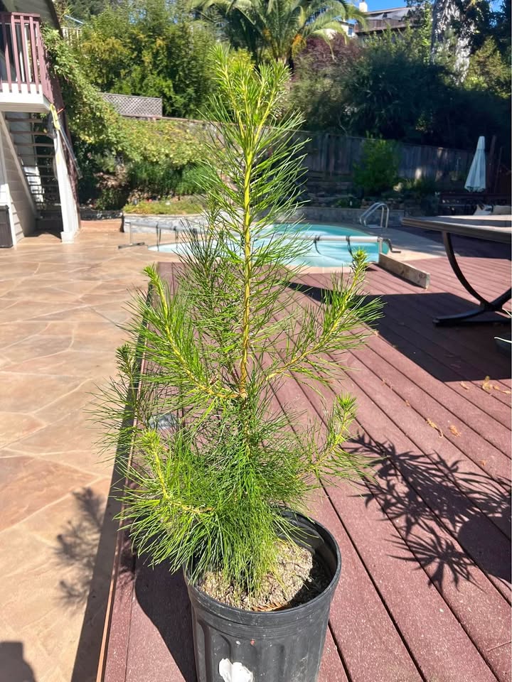 From 30Aug2024 to 17Aug2025: within a year this 3-gal Monterey pine has become a 5ft tall handsome one.