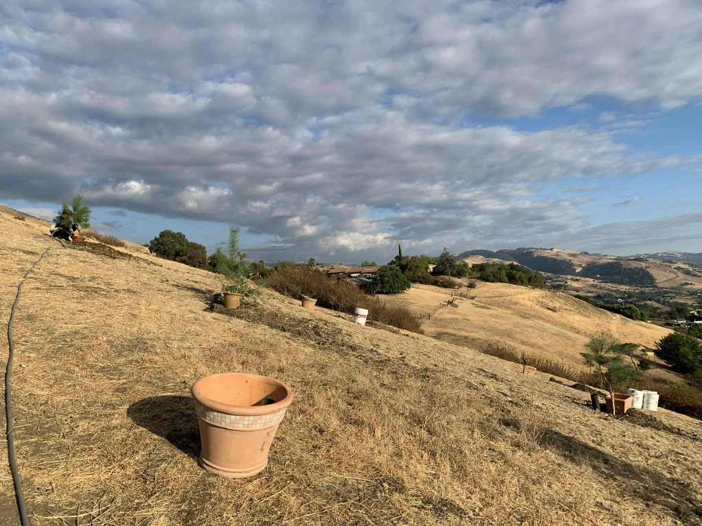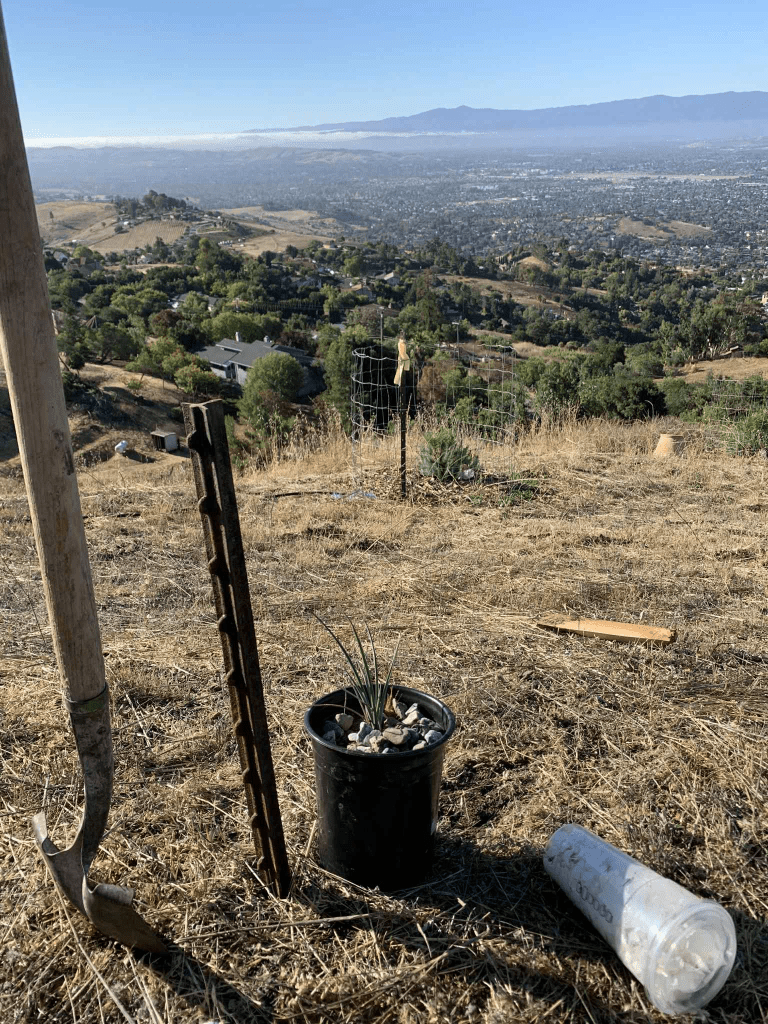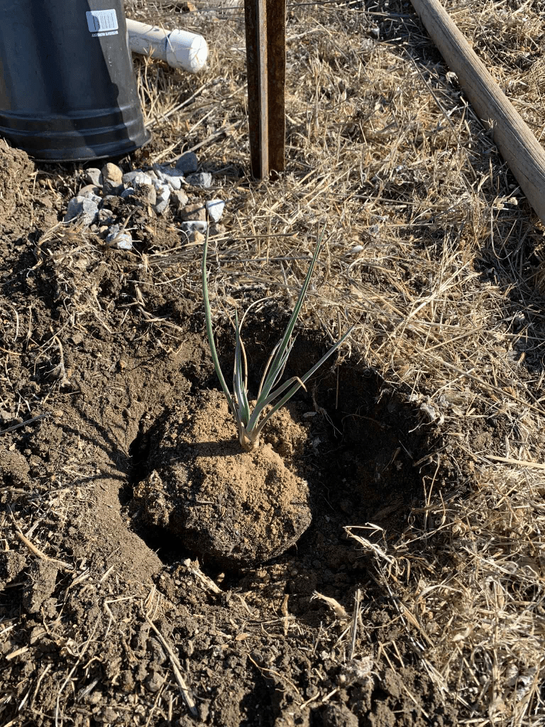 04Oct2025: Planted a first baby Joshua tree, from Mojave desert, into the middle hill – small right section.