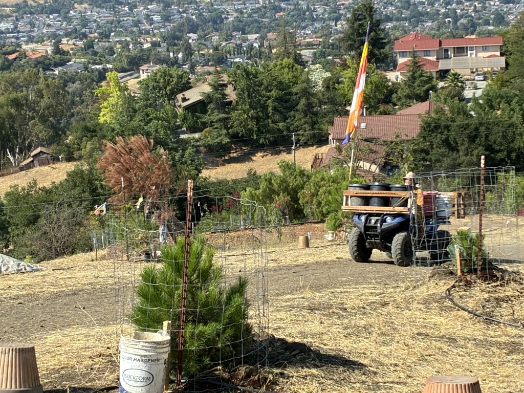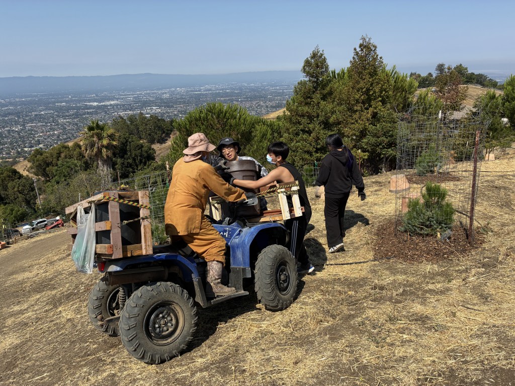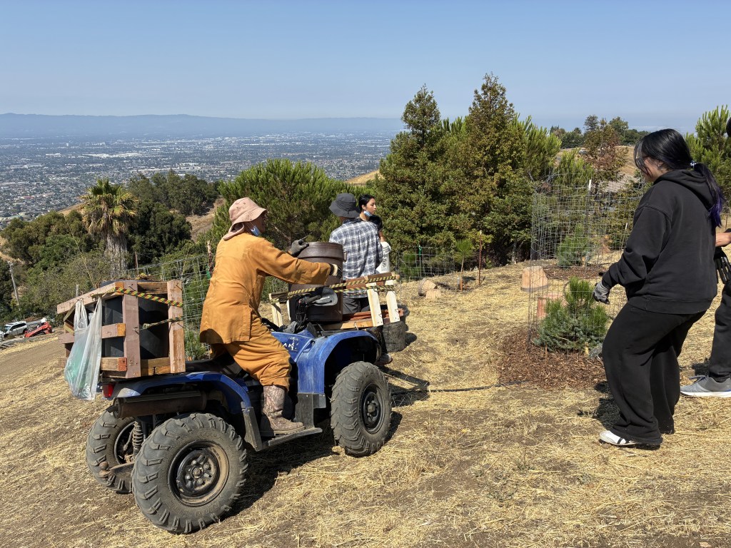 Thầy lái chiếc ATV vận chuyển những thùng lên đồi cho Nhóm 3.