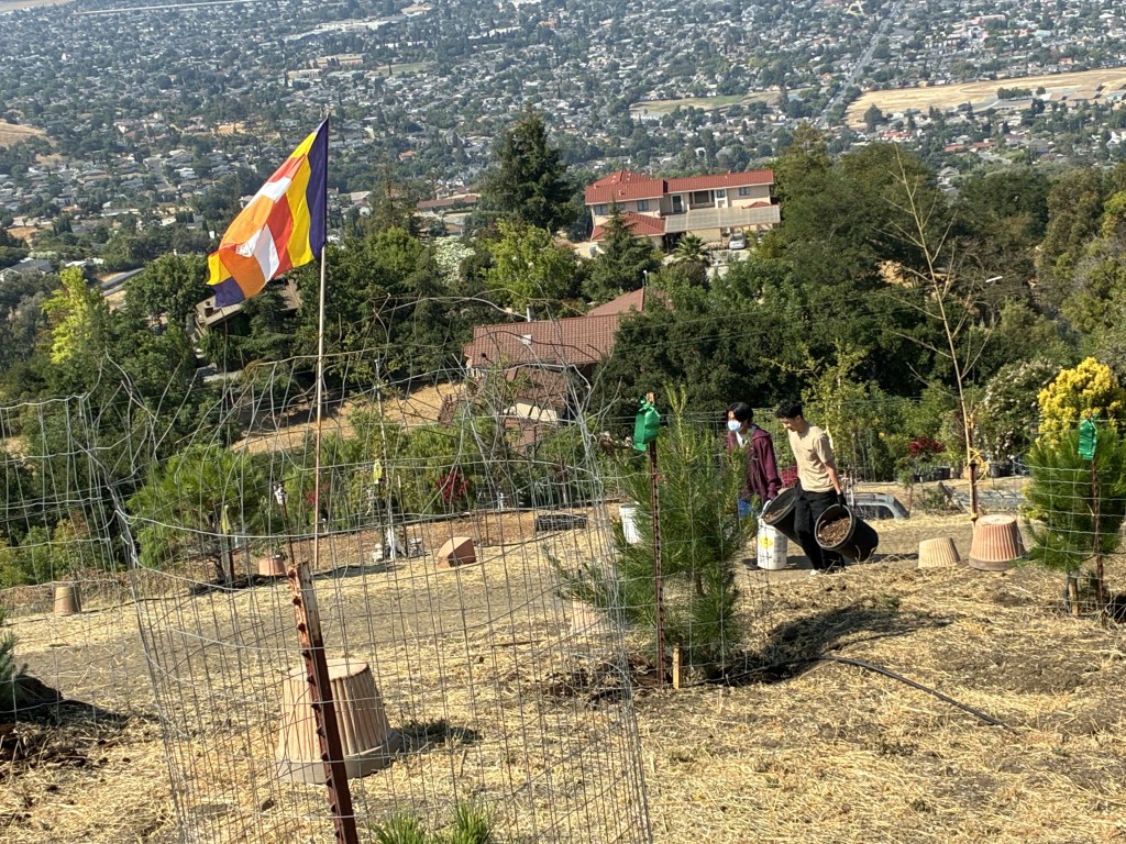 Buổi hoạt động tình nguyện đầu tiên tại Thiền Viện Viên Minh vào ngày 10 tháng 8 đã hoàn thành với sự giúp đỡ của chị Phật Tử Huệ Tâm cùng nhóm các em boyscout, girlscout, và gia đình. Nhóm các bạn trẻ đã có mặt sớm vào 9h sáng và chung tay hoàn thành công việc đổ vụn gỗ vào những gốc cây thông trên đồi để giúp cho việc giữ nước và ngăn chặn cỏ dại. Các bạn scout đã có cơ hội nghe Thầy Thật Triệt thuyết pháp đơn giản về phương pháp thiền quán và được khuyến khích thực tập quán chiếu tâm trong lúc làm việc.