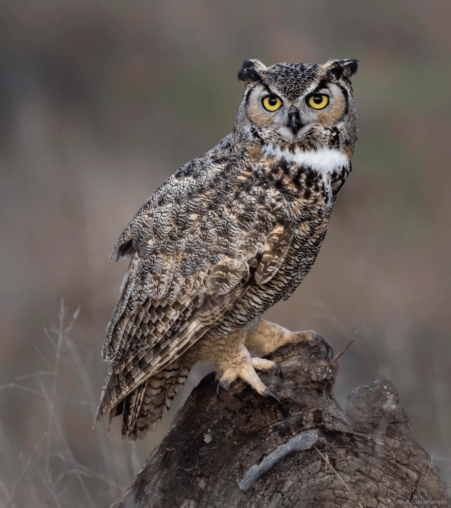 - Great Horned Owl (Cú sừng lớn) – dáng vẻ uy nghi, tiếng kêu “hoo-hoo-hoo”.
