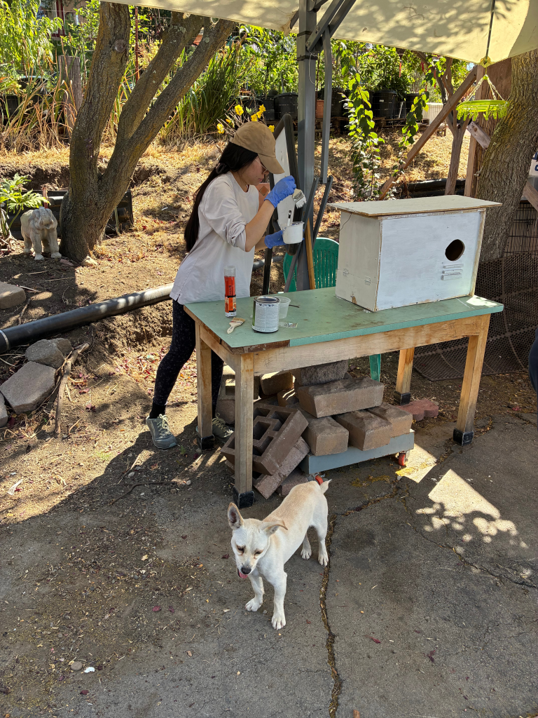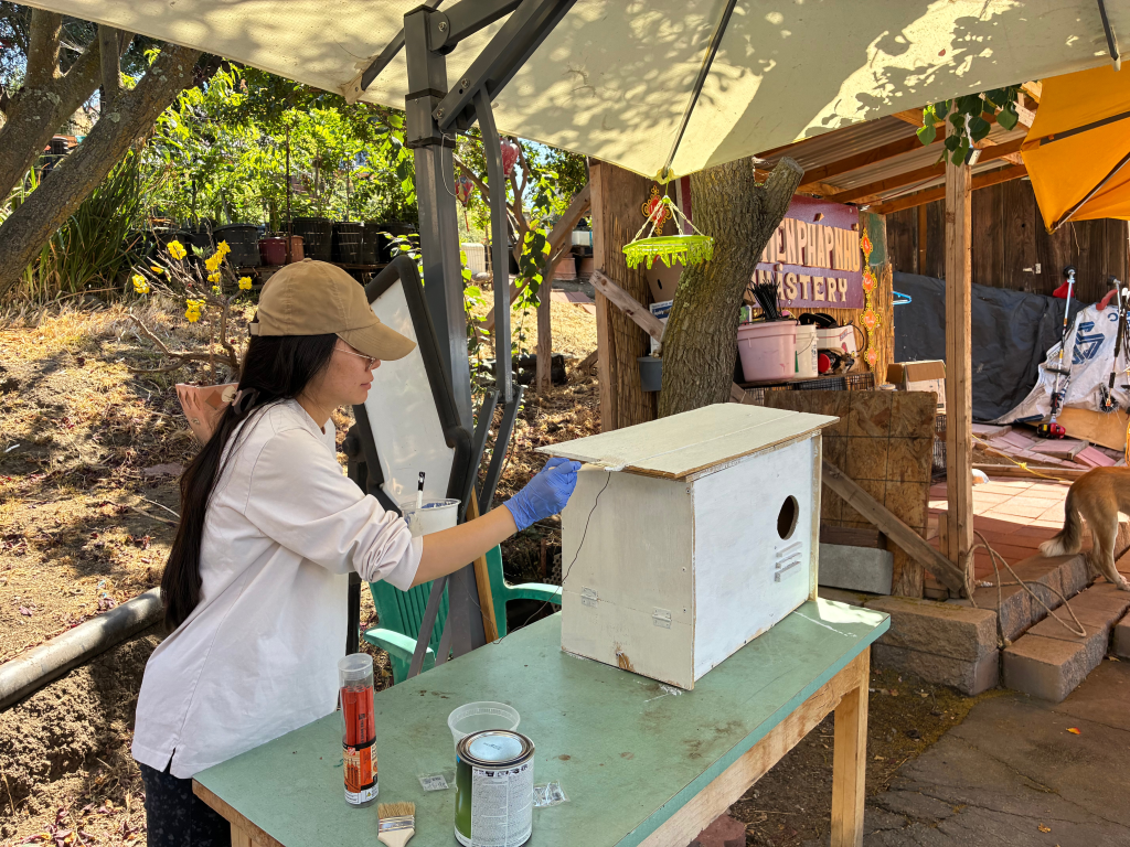 Trong khi đó, bạn Thảo cũng đã hoàn thành việc sơn cách nhiệt chiếc ổ ngày hôm qua.