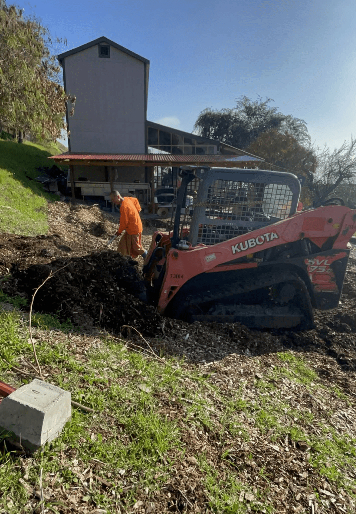 Trong tuần, quý thầy đã hữu duyên sửa chữa lại chiếc máy xúc Bobcat sau một thời gian dài hư hỏng nặng. Ngay sau đó, hai bạn TNV trẻ tuổi Suri, Kevin đã tận dụng chiếc xe này để rải đá dăm tại khu vực đậu xe bên hông nhà bếp, giúp mặt bằng gọn gàng hơn, thuận tiện cho việc bếp núc lẫn vệ sinh quét dọn.