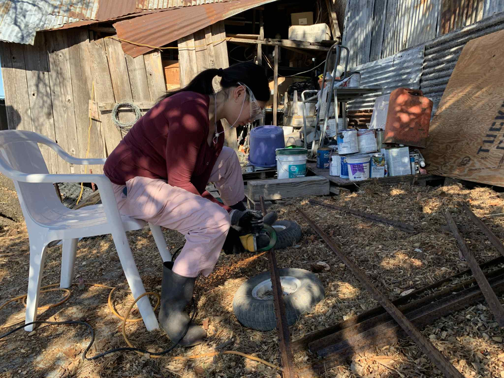 Để chuẩn bị cho việc trồng cây vào buổi chiều, bạn Suri đảm nhận việc cắt đôi những cây cột sắt 9 feet, dùng làm trụ để căng lưới bảo vệ cây non. Thực sự phải khen ngợi các bạn trẻ TNV, việc gì cũng có thể học nhanh, làm được và làm giỏi.