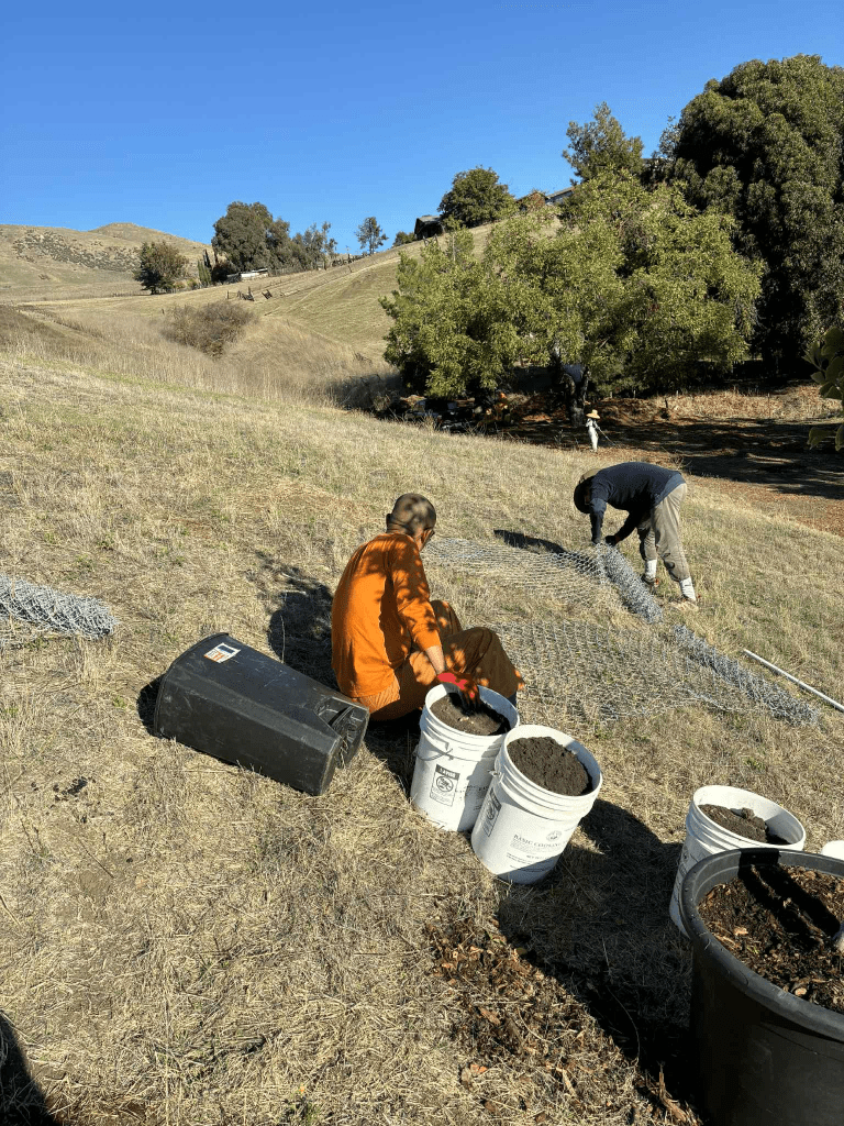 Tiếp nối công việc của tuần trước, cuối tuần này các bạn tình nguyện viên đã cùng nhau trồng thêm sáu (06) cây thông núi Ponderosa và hai (02) cây thông đá tại khu vực đồi trên (upper hill). Đây là phần tiếp theo trong kế hoạch phủ xanh sườn đồi, tạo bóng mát và giữ đất cho những mùa khô sắp tới.