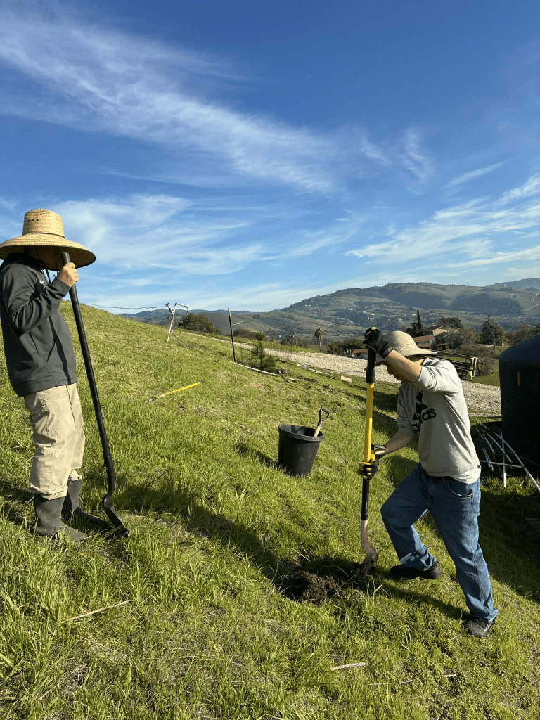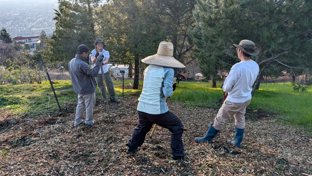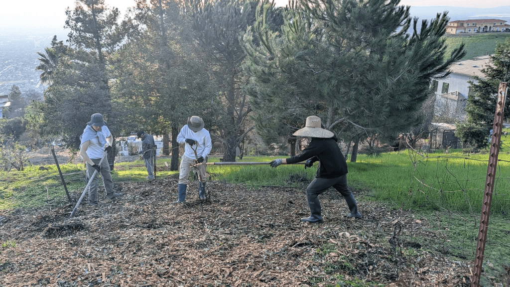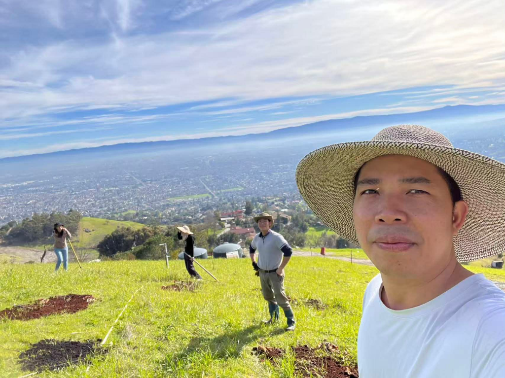 Hai anh bạn lần đầu trải nghiệm làm nông dân xứ San Jose 🙂