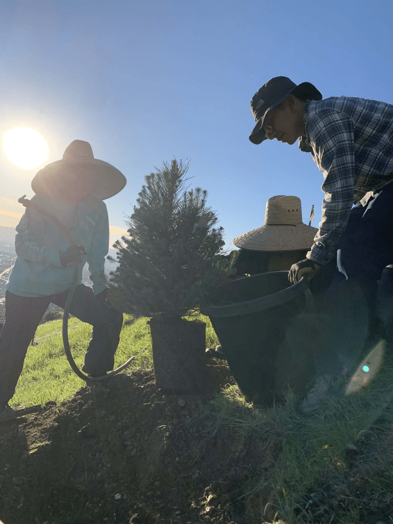 Dự tính khu vực này sẽ quy hoạch trồng các loại thông núi bản địa California. Nếu mọi sự thuận duyên, chúng ta sẽ có một sinh cảnh đa dạng cho mọi chúng sanh sau vài thập niên nữa. Công việc diễn ra rất vui và đã hoàn thành trước giờ cơm trưa.