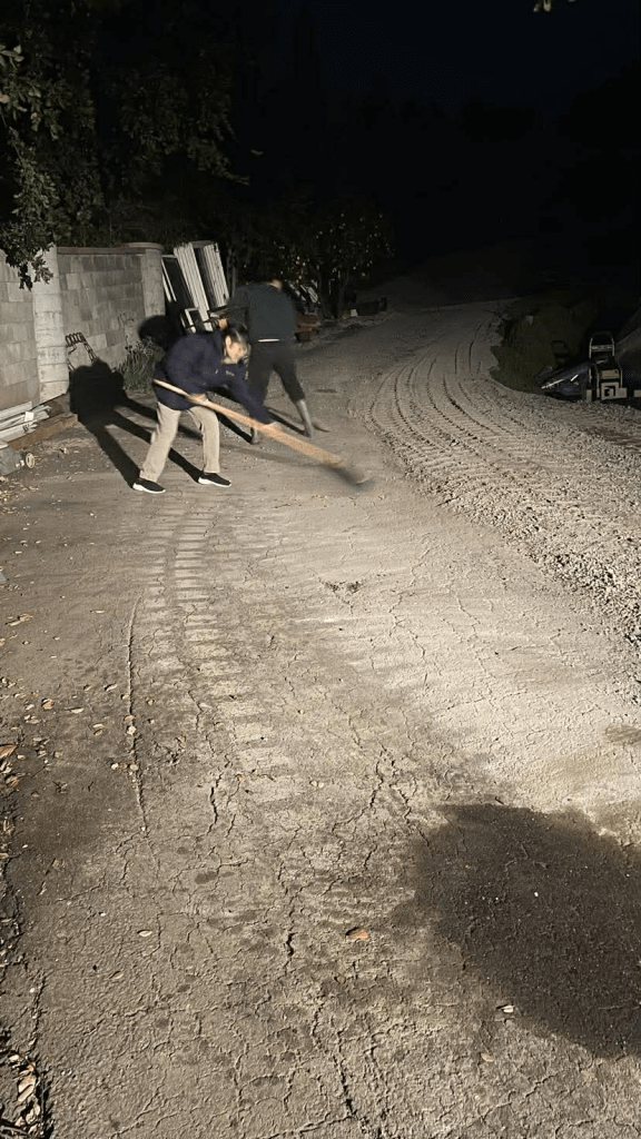 Trong tháng 12 năm 2025, con đường dẫn lên đỉnh đồi và khu vực phía sau nhà bếp đã được quý thầy cùng các bạn TNV sửa sang, mở rộng và trải đá dăm, giúp lối đi trở nên gọn gàng, sạch sẽ và thuận tiện hơn cho việc sinh hoạt. Dưới đây là hai bức ảnh trước và sau mấy ngày làm việc.